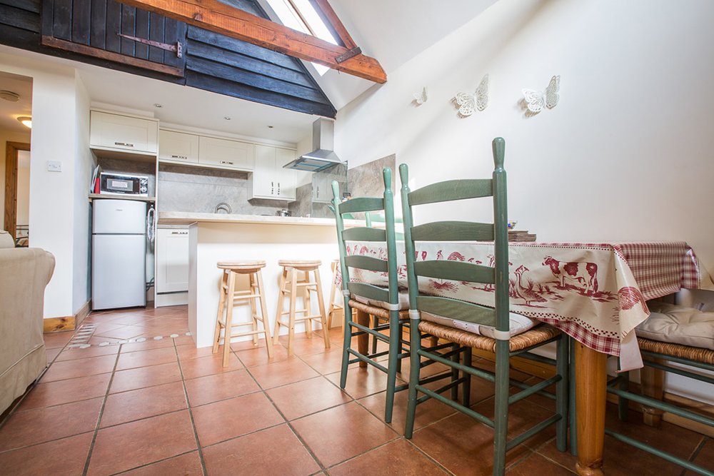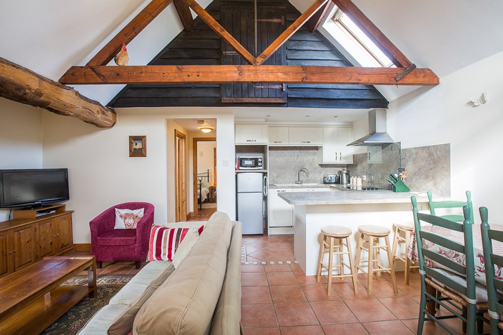 The cottage has an attractive open plan kitchen (fully equipped with oven fridge/freezer, microwave and dishwasher). There is a breakfast bar as well as table to seat 5-6 and a spacious sitting room. The hall leads to a light and airy bathroom with bath with overhead shower. The double bedroom has a large built in wardrobe and the twin bedroom can accommodate an extra single bed if required.